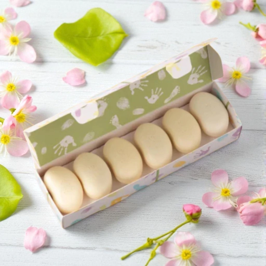 Com sua embalagem prática e estética delicada, esta caixa com minissabonetes é um mimo repleto de carinho, que traduz a essência do cuidado suave desde os primeiros momentos de vida.